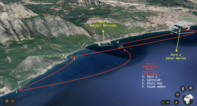 (AN3) Antalya Port-2 (Setur Marina) - Çaltıcak - Kargıcak- Ada